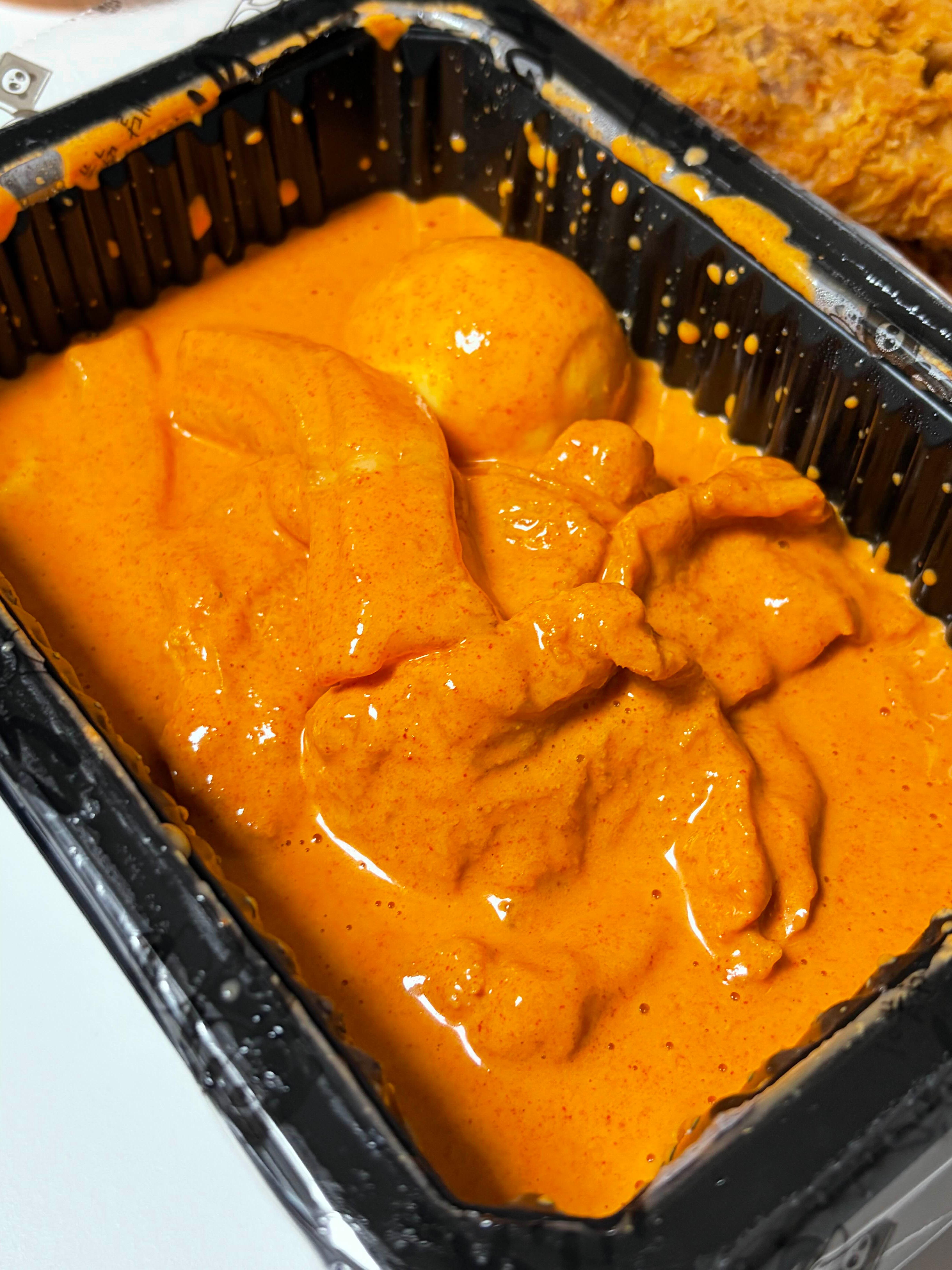 - 먹는 방법: 황금올리브 치킨을 로제떡볶이 소스에 찍먹