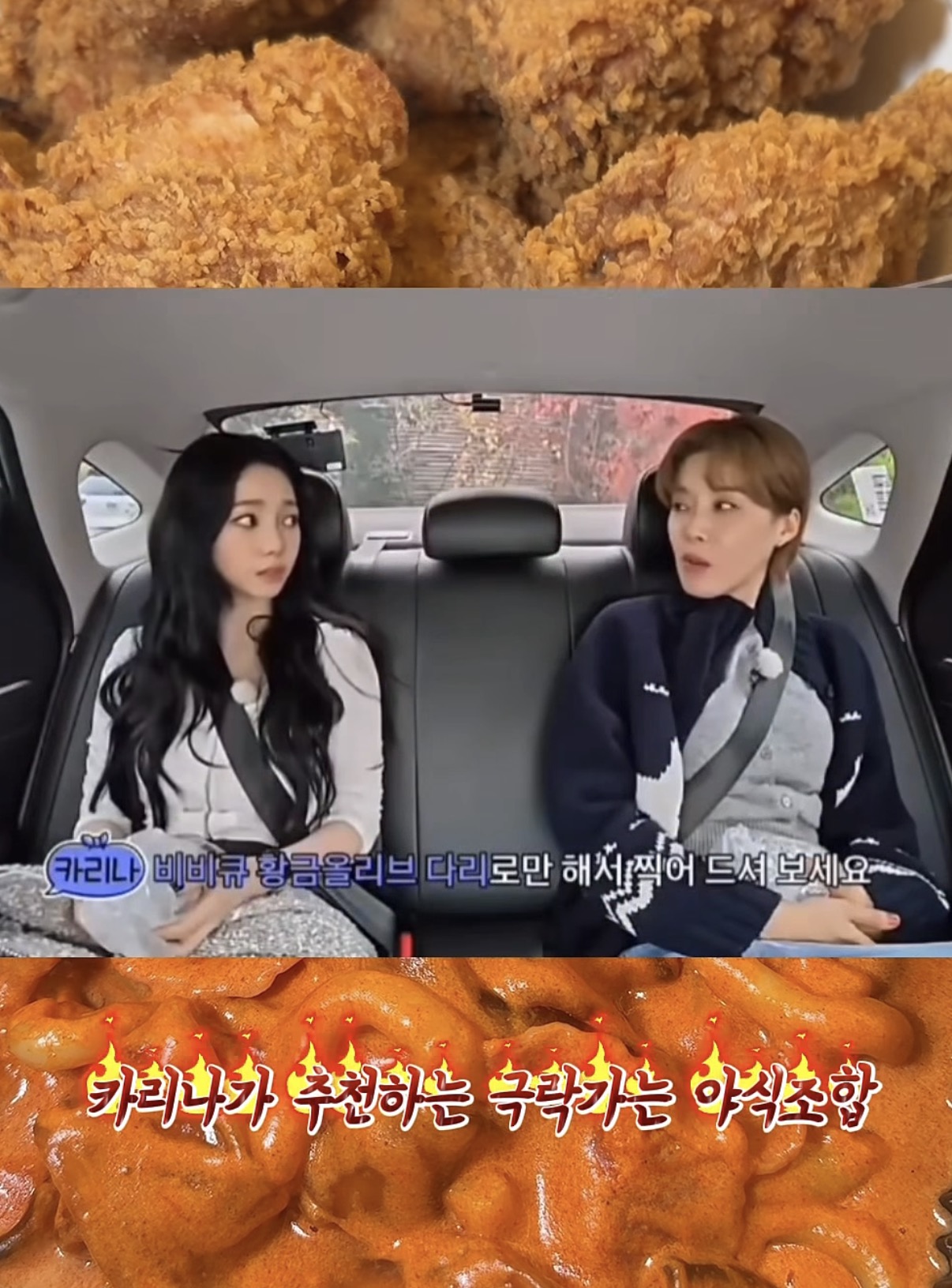 에스파 카리나가 방송에서 공개한 본인만의 극락 야식 조합입니다.