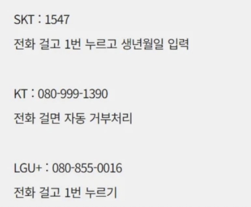 통신사 스팸차단 신청 (필수, 무료)